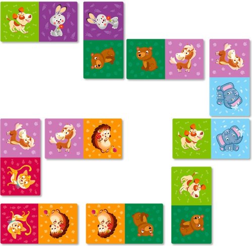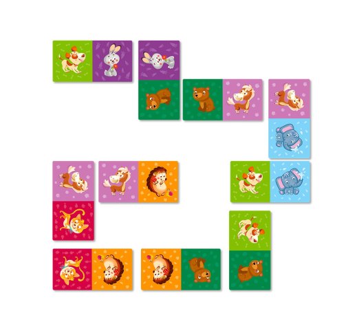 Oblíbená dětská hra Domino s motivem barevných zvířátek.