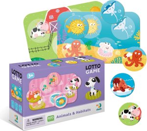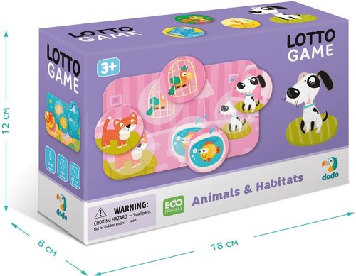 Zábavná dětská hra Lotto dětem přiblíží svět zvířat. Princip hry je podobný jako u klasického Binga. Každý hráč si vylosuje jednu kartičku a tu se následně snaží zaplnit odpovídajícími obrázky. Komu se podaří svou kartu zaplnit jako první vyhrává. Balení obsahuje: