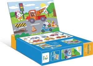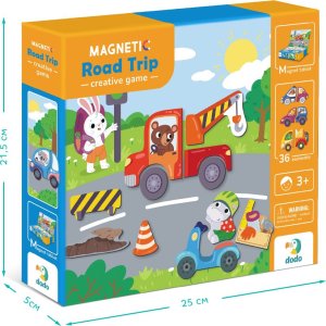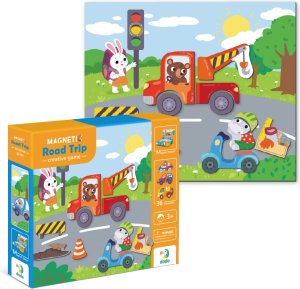 Sada obsahuje magnetickou desku a 36 magnetických prvků s dopravními prostředky a prvky dopravních scén. Děti mohou vytvářet vlastní silniční dobrodružství, přidávat vozidla, značky či překážky, a rozvíjet tak svou představivost a kreativitu. Magnetická deska je snadno přenosná, což umožňuje hru doma i na cestách. Hra podporuje jemnou motoriku a rozvoj jazykových dovedností. Krabička slouží jako stojan pro podkladovou magnetickou herní desku.
