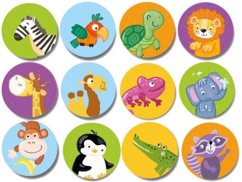Zvířátka - pexeso pro nejmenší děti s obzvlášť pevnými a kulatými kartičkami. Průměr jedné hrací kartičky je 5,5 cm . Klasická hra pro děti předškolního věku s roztomilými obrázky. Hledejte dvojice obrázků zvířátek. Zvítězí ten, kdo najde nejvíce dvojic. Pexeso cvičí soustředění a dobrou paměť. Hra je ideální jako rodinná hra, při které mají malí příležitost zvítězit nad většími. Hra obsahuje: 12 dvojic - celkem 24 kartiček, návod