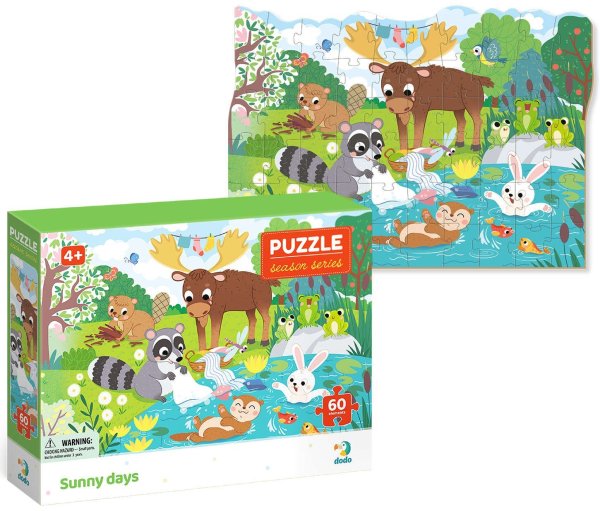 Puzzle z kolekce obrázků Roční období od výrobce DODO. Poskládejte si obrázek, který můžete následně doplnit o další scény se zvířátky během celého roku. V této barevné sérii najdete scény jarního probuzení, slunných dní, podzimní sklizně a zimních radovánek.