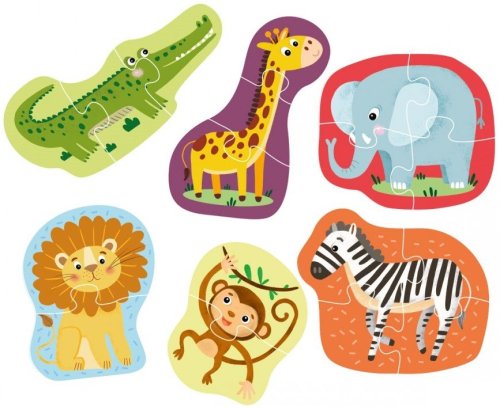 Dětské obrysové puzzle DODO s motivem šesti zvířátek ze safari.