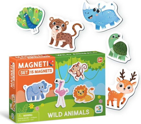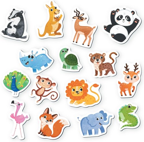Sada obsahuje 15 magnetek. Děti mohou snadno připevnit dílky na magnetickou desku nebo ledničku, rozvíjet jemnou motoriku, představivost a učit se poznávat zvířata. Hra je ideální pro děti od 3 let a podporuje kreativní hru a učení.
