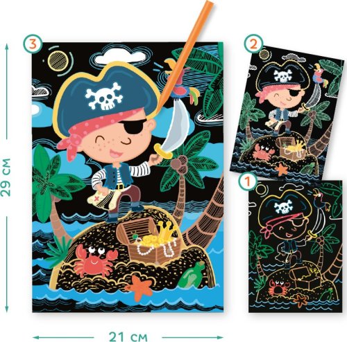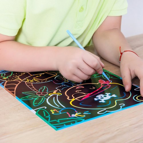 Zábava s barevným koncem! Škrabací obrázky DODO probouzí kreativitu, učí trpělivosti, představivosti a jemné motorice. Tato činnost zaměstná malé výtvarníky na dlouhé hodiny. Papír je potažený černou vrstvou skrývající podklad s barevným efektem, který z kresby udělá nevšední podívanou. Přiloženým škrabacím perem vyškrábejte linky předtištěného obrázku. Obsah balení: