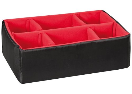 Dodáván je se zvlněnou pěnovou výplní a přepážkami, které se hodí například pro fotografické vybavení.