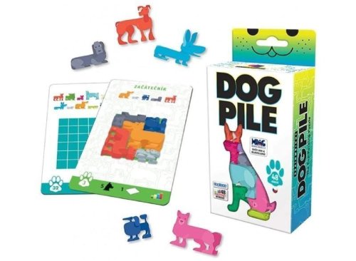 Procvičte svou mysl a vyplňte dostupný prostor psy všech tvarů a velikostí. A pamatujte: prostor bez psů je plýtváním!<br> <br> Jak to funguje? Pravidla hry Dog Pile jsou velmi jednoduchá a lze je popsat ve třech krocích:<br> 1. Vyberte si kartu s úkolem.<br> 2. Připravte si psy uvedené na kartě.<br> 3. Vyřešte hádanku tak, že naskládáte psy do daného prostoru.<br> <br> Balení obsahuje 44 hádanek s odpovědí pro vaší intelektuální zábavu.