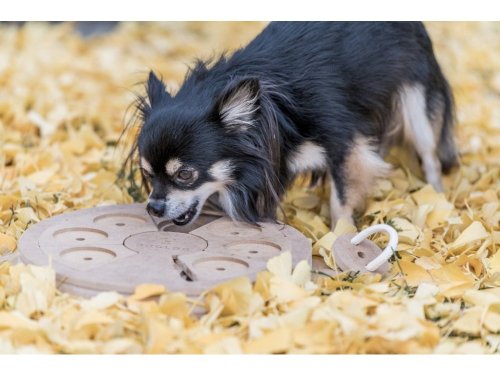Chcete hru použít jako zpomalovací misku? Nedávejte kulatý hrací kámen. Stačí jen naplnit všechny pole pro odměnu ideálním množstvím suché potravy. Tato varianta je vhodnější pro kočky, nebo pro neslintaly.