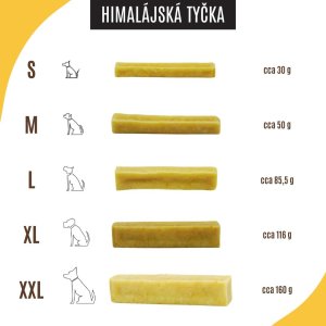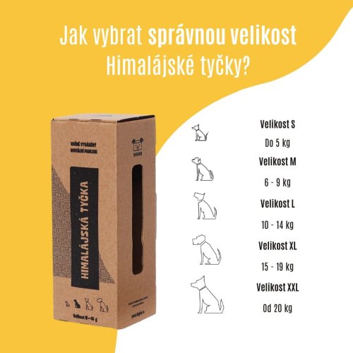 Správná velikost je klíčem k úspěchu: Pro maximální radost z Himalájské tyčky a bezpečné žvýkání vybírejte velikost tyčky podle hmotnosti vašeho psa (doporučené velikosti najdete ve fotogalerii).