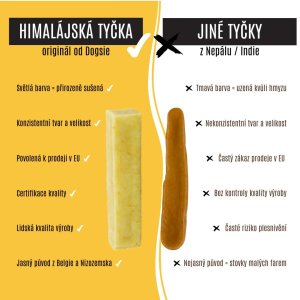 Hledáte bezpečný, chutný a odolný pamlsek, který vašemu pejskovi vydrží? Himalájská tyčka od Dogsie je originální žvýkací dobrota inspirovaná tradiční recepturou z hor – vyráběná z kvalitního belgického mléka, bez chemie, barviv a konzervantů. Díky pomalému sušení po dobu až 3 měsíců získává tyčka svou unikátní tvrdost a dlouhou trvanlivost. Žvýkáním a sliněním se postupně obrušuje a měkne, takže si ji pejsek bezpečně užije a zároveň si čistí zuby a dásně.