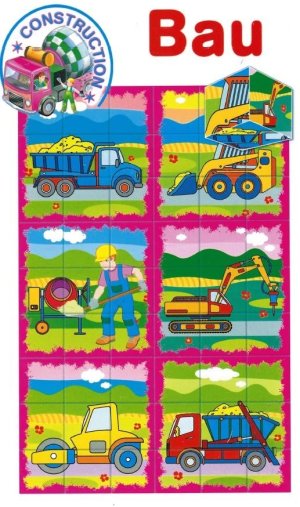 Plastové obrázkové kubusy s obrázky stavebních strojů. Při skládání kostek si děti procvičí koordinaci a motoriku prstů, zdokonalí se v orientaci a logickém myšlení a také poctivě pocvičí trpělivost. Z kostek lze stavět hrady, věže nebo komíny. Balení obsahuje 9 kostek. Určeno pro děti od 3 let.