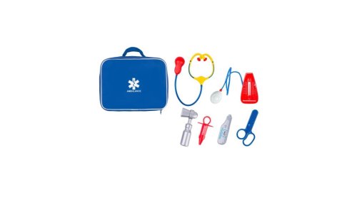 Doktorská sada v taštičce obsahuje 7 kusu doktorského příslušenství – stetoskop, nůžky, teploměr, injekce a další.