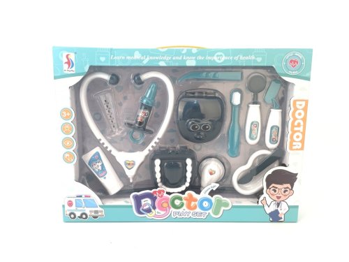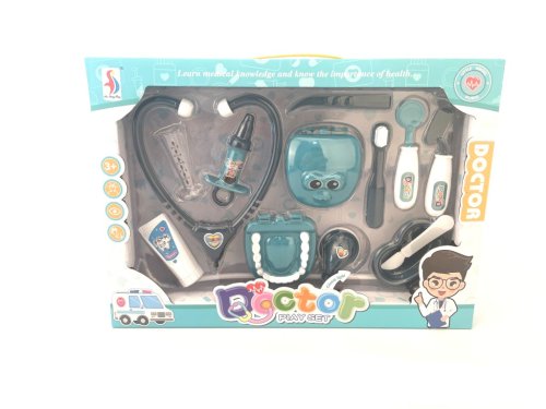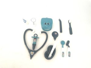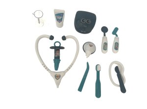 Tato zábavná doktorská sada je určena pro malé děti, které se chtějí stát zubaři a hravě poznávat svět stomatologie. Sada obsahuje různé nástroje, které jsou typické pro práci zubního lékaře, například stetoskop, injekční stříkačku, zrcátko, kleštičky, kartáček na zuby, model chrupu a další drobné pomůcky. Všechny tyto prvky jsou vyrobeny z plastu v kombinaci bílé a modrozelené či černé barvy, což dodává sadě příjemný a přátelský vzhled. Každý nástroj je navržen tak, aby byl bezpečný a vhodný pro malé děti od tří let.