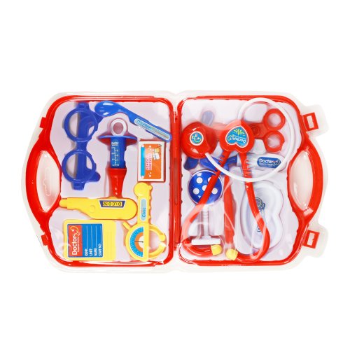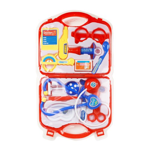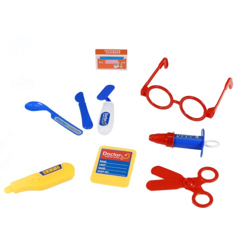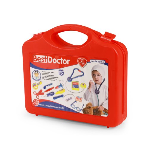 Profi set pro malé lékaře a lékařky! Praktická sada obsahuje plastové náčiní, bez kterého se opravdový lékař neobejde. Stetoskop, teploměr, léky. To vše a mnoho dalších najdeš v tomto praktickém kufříku. Vše je vyrobeno z PVC. Staň se profesionálním doktorem a přenes se do světa opravdové medicíny! Barvy příslušenství se mohou lišit.