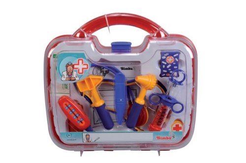 Kufřík obsahuje 10 dílů lékařského náčiní. Rozměry 30 x 28 cm.
