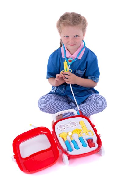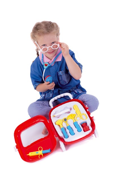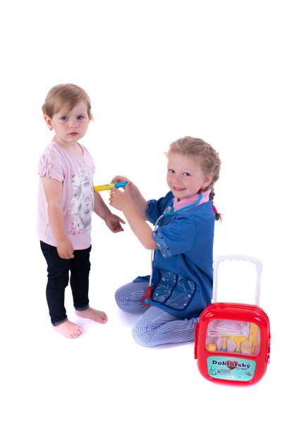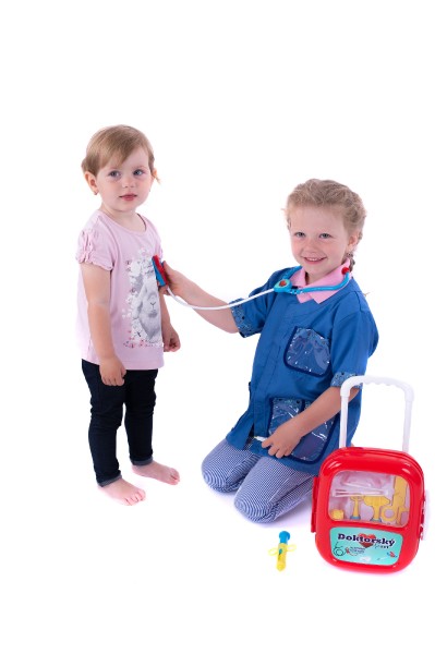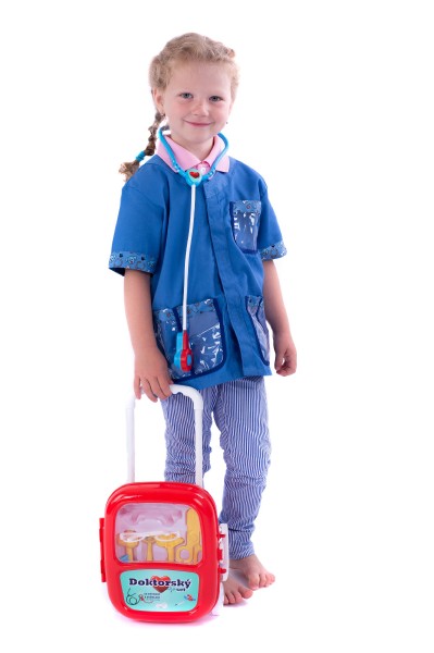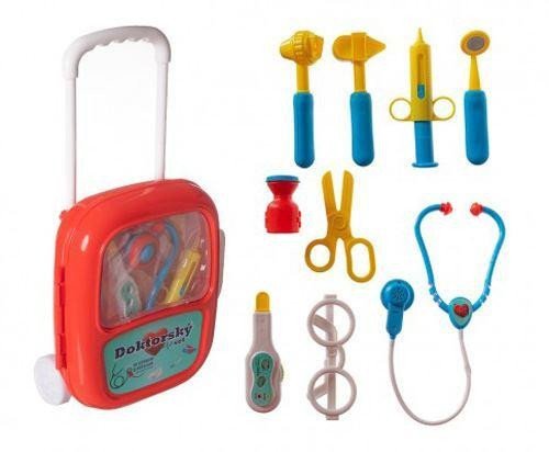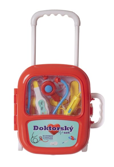 Sada obsahuje vše, co malý lékař potřebuje k ošetření pacientů. Všechny potřebné nástroje jsou uloženy v elegantním kufříku na kolečkách. Baterie jsou uloženy ve stetoskopu, který vydává zvuk tlukotu srdce. Baterie 3x AG10 jsou součástí balení. Rozměr plastového kufříku: 24 x 33 x 10 cm Vhodné pro děti od 3 let.