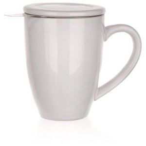 Hrnek 350 ml bílý keramický, víčko + nerez sítko. objem: 350 ml materiál: keramika, nerez barva: bílá Keramický hrnek s víčkem a nerezovým sítkem.