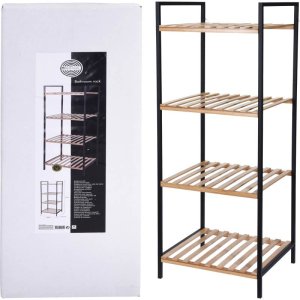 - úložný policový regál nejen do koupelny- ocelová konstrukce v matné černé barvě- ochranný nástřik prodlužuje životnost, brání proti korozi- žebrované police z přírodního bambusového dřeva- regál obsahuje …