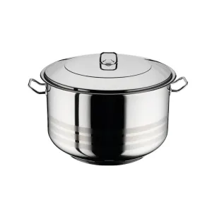 Celonerezový hrnec Gastro s pokllicí se zesíleným dnem, vhodný pro vaření větších objemů, ať už v gastro provozu nebo domácnosti.