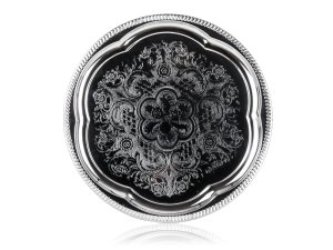 Tác AKCENT pr. 35 cm, Cr. průměr: 35 cm materiál: pochromovaný kov síla materiálu: 0,35 mm Pochromovaný kovový tác AKCENT s ozdobným gravírováním,