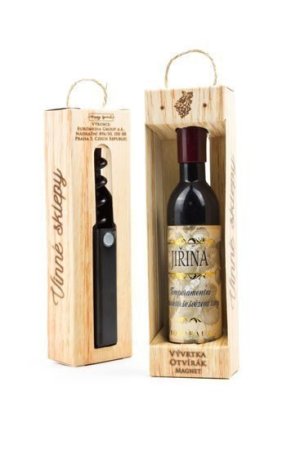 Vývrtka ve tvaru vinné lahve s originálním potiskem viněty je vhodným dárkem pro všechny milovníky vína.