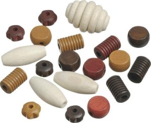 Dřevěné ozdoby v praktickém boxu, 9 motivů po 5 ks.