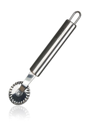 Rádýlko má nerezové kolečko a dřevěnou rukojeť v mixu barev (světlá, tmavě hnědá).