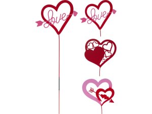 Zápich kov 245 mm srdce se špejlí, červená.