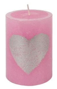 Svíčka růžová se srdcem válec 7 x 10 cm, 35 hodin