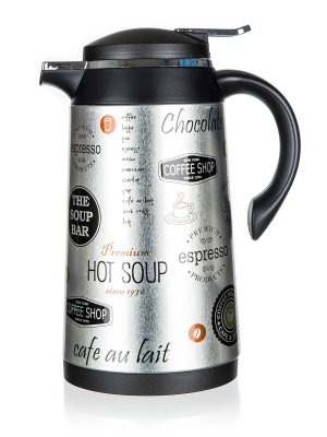 Termokonev CONTE 1 l, nerez + PH, s potiskem. objem: 1 l průměr: 13 cm výška: 26 cm mateirál: povrch nerez / plast PP / pochromovaný ABS plast, silikonové těsnění, vnitřní část skleněná Termokonvice …