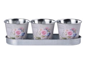 Květináč plechový v motivu Jardin v barvě mix 3ks set 230x80x67mm