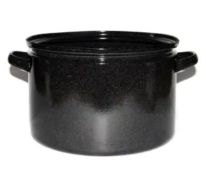 Průměr: 24 cm Výška: 13,5 cm Objem: 5 l Vnější barva: černá matná s ručně nanášenou plasticitou Smaltovaný hrnec s poklicí.