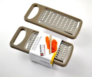 Kvalitní mini nerezové struhadlo s hrubou slzou, plastovou ručkou, kuželovitý tvar.