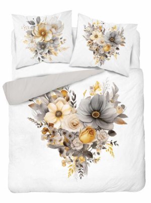 DETEXPOL Francouzské povlečení Květy heart gold 220/200, 2x70/80 Materiál: 100% Bavlna Rozměr: 1x 220/200, 2x 70/80 cm Bavlněné povlečení ve francouzském rozměru 220x200 cm na dvoulůžko, zapínání na …