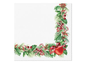 Stylové vánoční prostírání zdobí zlatá lurexová výšivka stromečku.