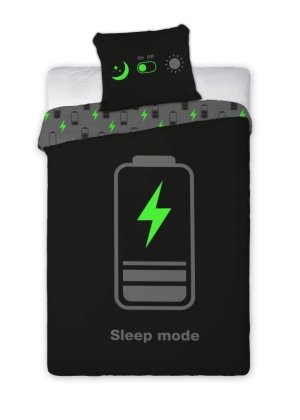 FARO Povlečení Sleep Mode svítící 140/200, 70/90 Bavlněné povlečení na velkou postel, zapínání na zip, povlečení má z každé strany jiný motiv, viz. foto, povlečení svítí ve tmě po nasvícení na denním …
