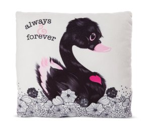 Obdélníkový plyšový polštář z kolekce NICI's LOVE Classic přichází s propracovanou nášivkou labutě a nádherným 3D přívěskem srdce s poselstvím "always & forever".