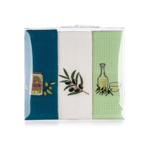 3dílná sada vaflových utěrek s výšívkou OLIVES je nepostradatelným pomocníkem pro nejrůznější využití v kuchyni.