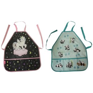 Dětská malířská/řemeslná zástěra s potiskem 2 motivů Velká přední kapsa se 3 kapsami na malířské a kutilské potřeby Zapínání na suchý zip u krku a popruhy na zádech Včetně jmenovky Materiál: polyester …