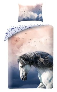 HALANTEX Povlečení Kůň sky 140/200, 70/90 Materiál: 100% Bavlna Rozměr: 1x 140/200, 1x 70/90 cm Bavlněné povlečení na velkou postel, zapínání na zip, motiv peřiny je z každé strany jiný, možnost praní …