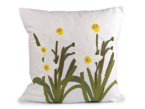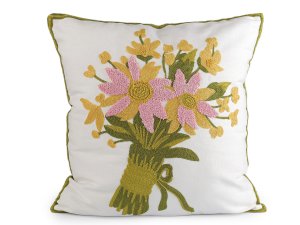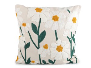 Povlak na polštář zdobí designová výšivka květin, bude se v interiéru vyjímat celoročně.