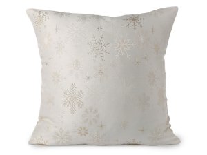 Vánoční povlak na polštář je ozdobený motivem třpytivých sněhových vloček.