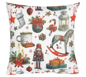 Povlak na polštář zdobí vánoční motiv.