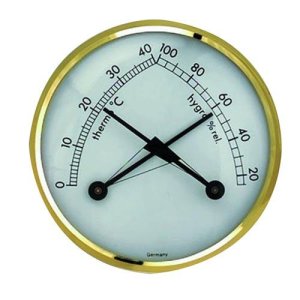 "rozměry: pr. 71 x 26 mm hmotnost: 35 g s mosazným kroužkem montáž na zeď ukazuje v % stupeň vlhkosti ve vzduchu Teploměr - vlhkoměr dokáže ihned určit, zda máte v místnosti správnou teplotu a …