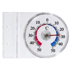průměr: 72 mm hmotnost: 21 g materiál: plast montáž na okenní rám s lepícím čtverečkem Okenní kulatý teploměr s přehlednou stupnicí pro vnější použití vhodný pro připevnění na rám okna.