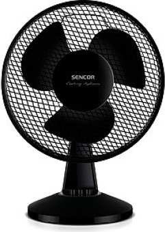 Stolní ventilátor 2 rychlosti Průměr lopatek 23 cm Automatická horizontální rotace v úhlu 90° s možností vypnutí Nastavitelný úhel sklonu Přední a zadní kovová ochranná mřížka Protiskluzové nožky Ochrana …