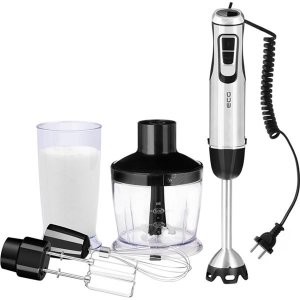 Tyčový mixér, výkonný 800 W motor Kovová noha s 4 listovou čepelí z nerezové oceli 500 ml nádoba na sekání se samostatnou čepelí, 600 ml odměrná nádoba Nástavec na šlehání sněhu, dvojitý nástavec na …