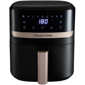 Horkovzdušná fritéza RUSSELL HOBBS Satisfry Air 5,5 L Nastavitelná teplota 40-200 °C Kapacita 5,5 l Černé texturované tělo s prvky v trendy champagne odstínu Příkon 1500 W 9 přednastavených funkcí (Hranolky/ …