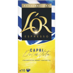 Kapsle Nespresso L´OR Destinations Capri Dolce Vita 10 ks Intenzita 12 Bohatě ochucené ristretto Kombinuje spálené a kouřové tóny s akcenty temné sladkosti Je silný, ale překvapivě hladký Výrazné tóny …