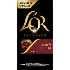 Kapsle Nespresso L´OR Espresso Barista 10 ks Intenzita 13 Vychutnejte si plnou chuť od prvního doušku, po kterém následuje dlouhotrvající intenzivní chuť s tóny pražené kávy a čokolády Kávoví umělci …