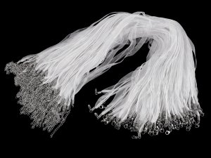Hotový závěs z organzové stužky a tří voskovaných šňůrek je velice oblíbený.